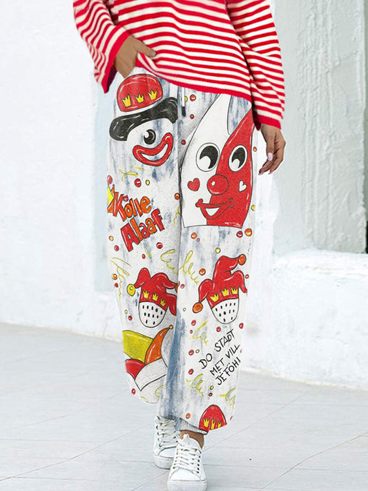 Frauen Kölner Karneval Clown Print Freizeit hosen