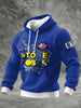 Men's British The Stone Rose Patchwork Print Blue Hooded Sweatshirt